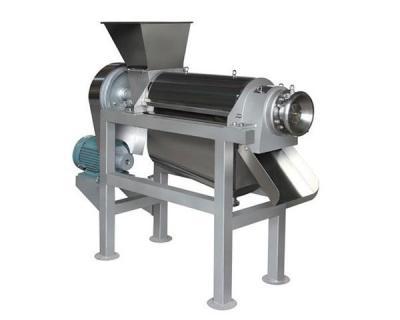 果蔬榨汁機工作原理:螺旋軸沿著料渣出口方向順時針旋轉,底徑逐漸加大而螺距逐漸縮小,當物料被螺旋軸推進時,因螺旋腔體逐漸縮小,從而形成對物料的壓榨。果蔬品加入料斗中,在螺旋軸的推進與擠壓下,被壓榨出的汁液通過過濾網流入底部的盛汁器,而出渣由螺旋軸及調壓頭的錐型部分之間形成的環狀空隙排出,調壓頭可調整空隙大小,來調整排渣的阻力,即可改變出渣率,調壓頭的空隙大小應視被加工果蔬品的工藝要求而定。