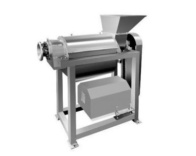 該機用途廣泛,可針對大型果蔬進行榨汁。物料經過一級破碎控制大小,再通過螺軸二級破碎向前推進,在螺旋的推進下受壓,其壓榨的汁液通過過濾網流入底部的盛汁器,而廢料則通過螺旋及調壓的錐形部分之間形成的環狀空隙排出。從而達到汁與渣自動分離的目的。