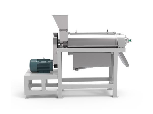 處理量大,出汁率高,雙軸螺旋四螺桿結構設計及壓榨室前端的雙螺桿增壓傳送,能夠增加物料出汁率,防止物料打滑、物料與螺桿粘連等。該機型解決了單螺旋及其他螺旋榨汁機出汁率低、處理量小、需緩慢加料、長時間工作后椰肉會粘連在螺桿上,造成機器榨堂堵塞,機器停止運轉等缺點。